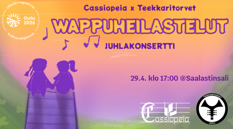 Read MoreVappu tulee taas! Tänä vuonna Cassiopeian perinteinen vapputervehdys palaa perinteiselle paikalle, kun keväiset soinnut kajahtavat vappupäivänä Oulun kaupungintalon portailta. Tervetuloa